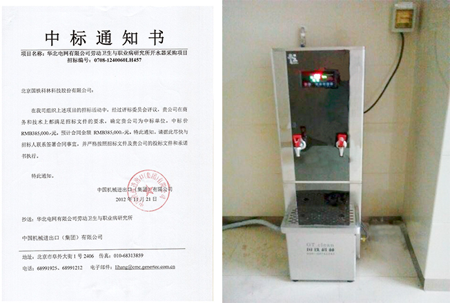北京電力醫(yī)院隸屬國家電網(wǎng)有限公司、華北電網(wǎng)有限公司。2012年11月份華北電網(wǎng)有限公司勞動衛(wèi)生與職業(yè)病研究所開水器采購項目招標,我公司成功中標。此次安裝了50多臺開水器。